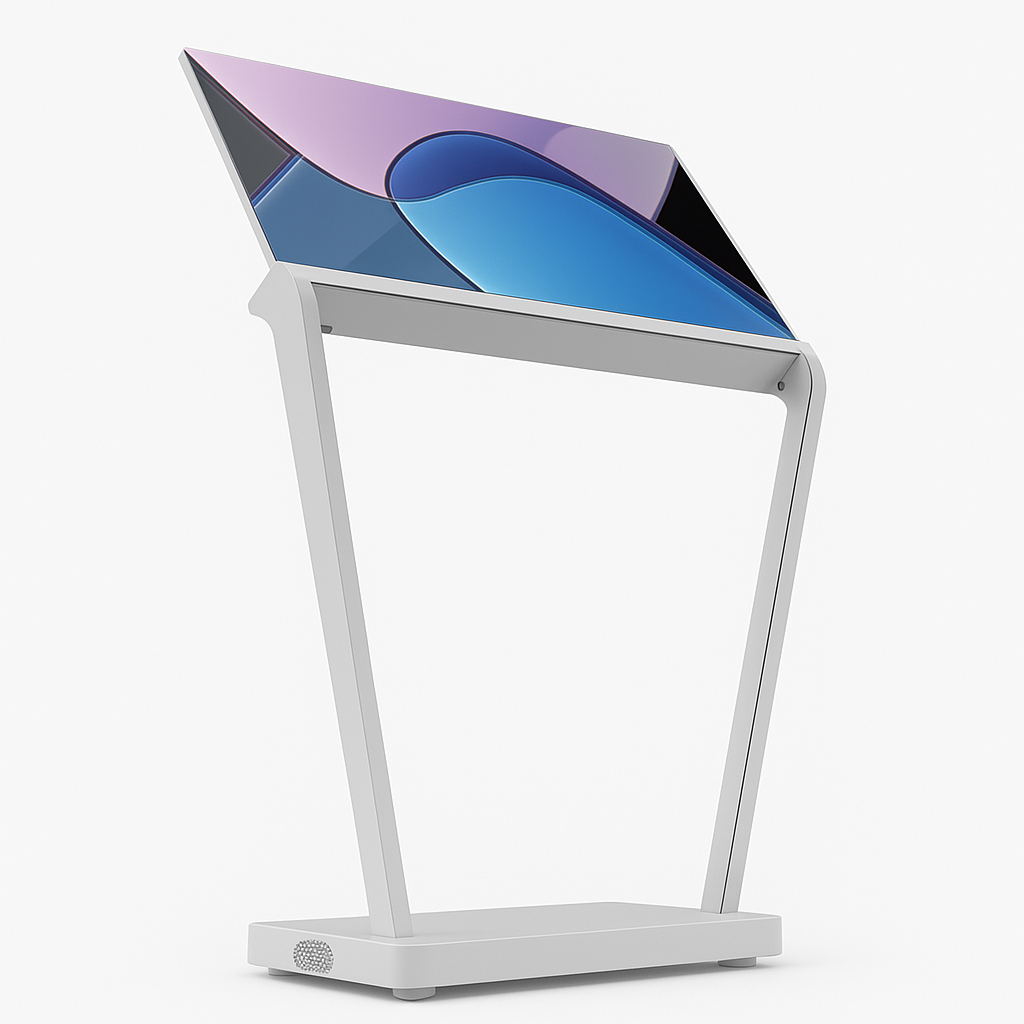 Step into the future of digital display with Specktron’s 30″ Transparent OLED Kiosk—a revolutionary fusion of glass, light, and interactivity that redefines how audiences engage with content.